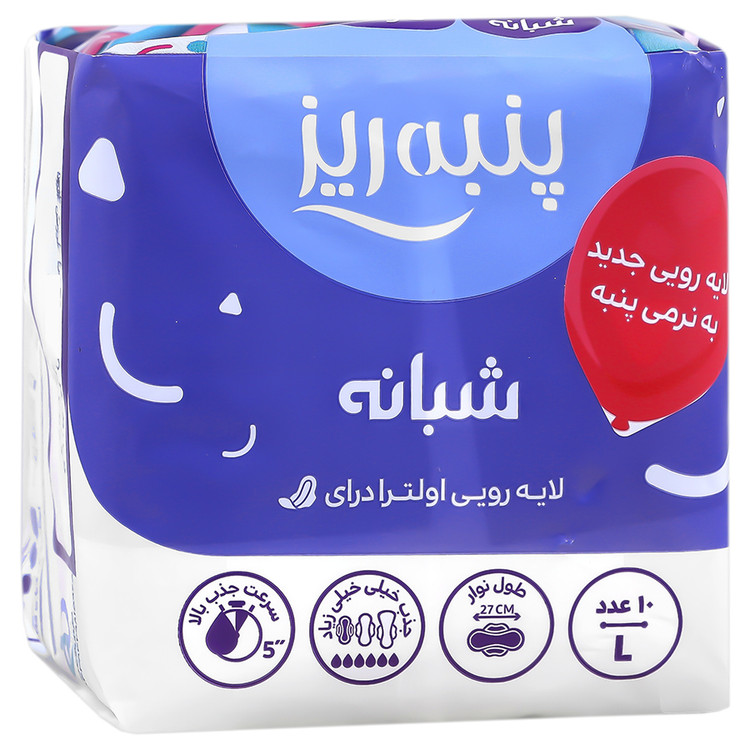 نوار بهداشتی شبانه 10 عددی بزرگ پنبه ریز